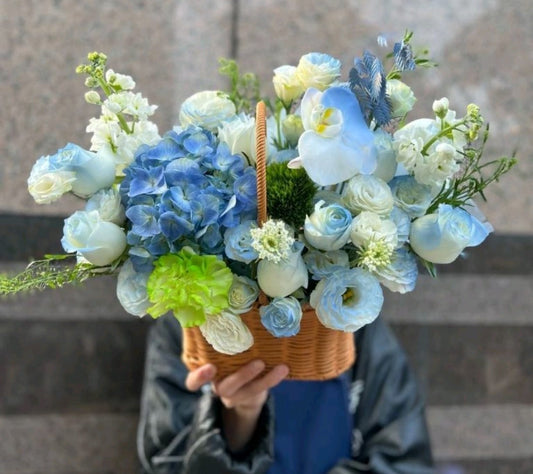 藍玫瑰繡球花蝴蝶蘭花束 香港鮮花即日配送
