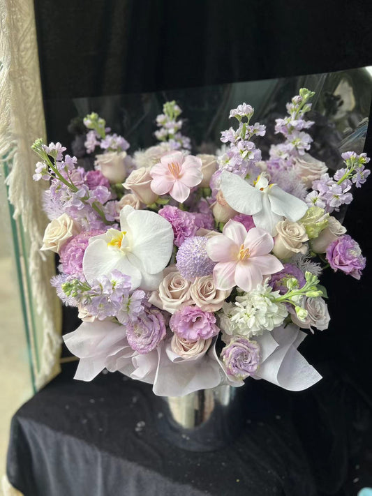 香港花店|Purple Rose Box紫玫瑰花桶 蝴蝶蘭紫色系花盒 即日送貨