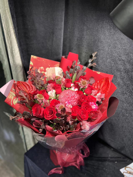 香港花店|Red Bouquet 紅色花束 紅玫瑰 即日鮮花
