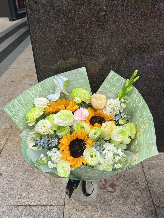 香港花店|Sunflower bouquet Graduation bouquet 太陽花滿天星 畢業鮮花