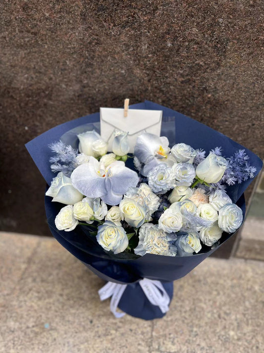 Blue bouquet藍玫瑰蝴蝶蘭花束 L 香港鮮花即日送貨b32