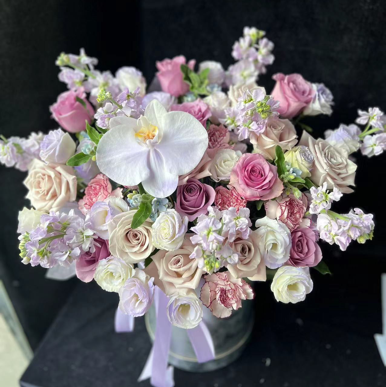 香港花店|Purple Rose Box紫玫瑰花桶 花盒 即日送貨